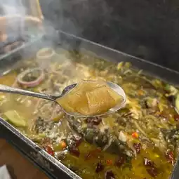 The soup of Lao Tan pickled cabbage bean curd is moderately sour and spicy, because the spiciness and hemp can be adjusted according to personal taste, so we chose BB spicy, just suitable for us who only like light spicy taste is very tasty, but will not mask the freshness of sea herring The meat of the herring is fresh and smooth after grilling. The side dishes are also crispy cucumber and tender tofu, so that the whole dish tastes more distinct, smoky and smooth.
