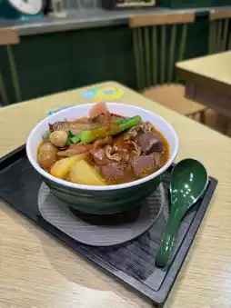 The large pieces fill the entire soup bowl, and the portion is generous! The curry has a rich aroma and you can choose the level of spiciness; the beef cypress leaves are fresh, tender and crispy, the beef tripe is tasty and soft, and the beef tendons are tender and chewy.