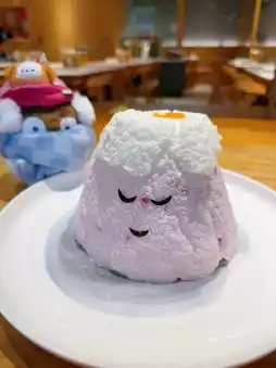 Ordered their recommended pink snow mountain scallop radish cheese fried rice ❤️ snow mountain shape is very cute ✅ cheese lava on the top made very carefully 🤗 cut the snow mountain pouring direct evil 😈 fried rice savory and delicious, rich ingredients, worth a try 👍