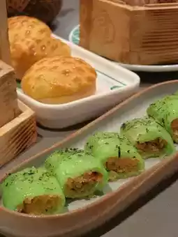 The Emerald Bell Rice Noodle Roll is so crispy and fluffy. The rice noodle roll skin is not tender but a bit tough. Putting the two together, the taste is so rich.