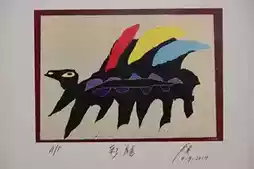 Chen Yusheng (1925-2020) started painting at the age of 42. In his early years, he mostly used plastic paint to create works, and quickly established a distinctive and unique personal style. In 2001, he developed a health condition that prevented him from standing for long periods of time. However, he did not give up and instead turned to using Microsoft Painter to create his works. Chen's digital artwork "Colorful Dragon" is one of his representative works after the millennium, showing his infinite creativity in the field of digital art.