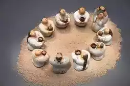 Contemporary artist Li Huixian's ceramic works are known for their simple charm and sense of life, fully demonstrating her keen observation of society. She often uses humor to satirize the anomalies in life, allowing the audience to reflect on people and things in daily life while appreciating her works, and is deeply loved by the audience. The work "Ritual" exhibited this time cleverly combines the ritual of worshipping heaven with pottery to create a group of simple and vivid pottery dolls.
