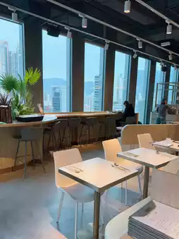 Today at the Twin Plaza in Kai Tak, I found a very chill Fusion restaurant 🥰 The restaurant environment is open and spacious, the wooden main tone design is warm and comfortable ❤️ Outside the window can overlook the high-rise city view of Kai Tak, very good 👍