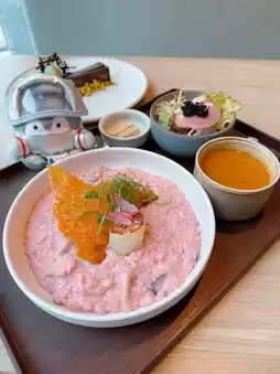 Must try the restaurant's main apple wood smoked French goose liver ✅ The smoked effect when served with the lid is excellent 🫶 100 points for taking pictures ❤️ The meal is exquisitely presented with care, very pleasing to the eye 😆 The goose liver melts in the mouth, soft and smoky, paired with fresh bananas and strawberries to eat together, oily but not greasy 🌟 full of taste 😋