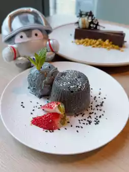 The rich black sesame heart cake is also excellent😍 The heart cake is crispy on the outside and soft on the inside, every bite is rich in rich black sesame fragrance🤤 You can see the overflowing black sesame cream pulp when you cut it open🤩 Super evil😈 Served with black sesame ice cream, the taste of ice and fire is exciting and addictive❣️