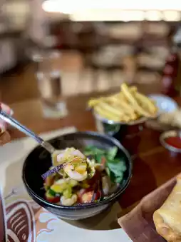 First, let’s start with the appetizer of large stuffed dumplings 🥠, which are very rich in ingredients; the pickled shrimps are fresh and are eaten with salad.