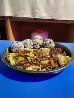 Stir-fried fragrant but not spicy, with cabbage, pork cartilage, carrots🥕 and fist rice.