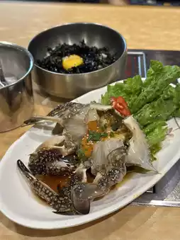 Also added a little sauce crab, quite big and a lot of paste, crab meat savory and fresh, leave a little crab paste to use with rice very evil! ! There is a raw egg yolk on the butter rice, and plenty of shredded seaweed. It tastes rich and fragrant when stirred