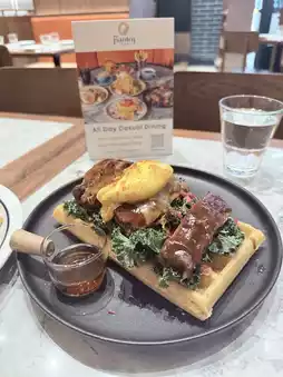 $159 pork rib benedict waffle is one of the signatures, can't help it, a person wantonly order more d. Checkered waffle only has pork legs and melted eggs, cut the Dutch sauce and egg juice to flow!