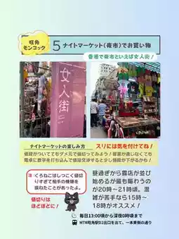 This time, I hope that even those who are new to Hong Kong can learn about the charm of Hong Kong, so I've put together a one-day plan, basic information, and recommended spots! Please use it as a reference! ◾︎When you arrive at the airport, purchase an Octopus card to make travelling very convenient! ◾︎Which way will you use to get from the airport to Hong Kong city? The Airport Express is fast and convenient, but I recommend purchasing your ticket in advance! If you make a reservation, you can get on by just holding up the QR code on the day! (※All seats are unreserved) ◾︎After checking into the hotel, enjoy shopping, egg tart tasting, and local food in Tsim Sha Tsui, which is a must-see when visiting Hong Kong! ◾︎Don't miss the 15-minute light and music show "Symphony of Lights" that takes place every night from 8pm at Tsim Sha Tsui Promenade ✨ ◾︎Ladies' Market is Hong Kong's night market! A shopping spot where you can enjoy interesting miscellaneous goods and clothing from the evening!