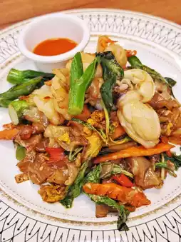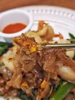🍝 Fragrant fried drunk cat seafood crystal fried rice noodles 👍 quite hot, aromatic 👃🏻, wide rice noodles smoky to dance 💃, savory with slightly sweet, full of Thai 🇹🇭 authentic flavor.