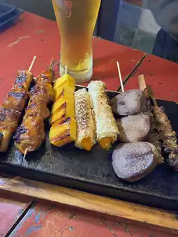 Located in Tsim Sha Tsui's Po Le Lane, "Happy Rice Grill" focuses on grilled seafood and a variety of different skewers, and you can also choose your own seasoning, such as satay, spicy or salt grilled, very flavorful, and every Monday to Sunday there are discounts, such as 75% discount, beer buy one get one free, designated skewers half price, oysters, pineapple, etc