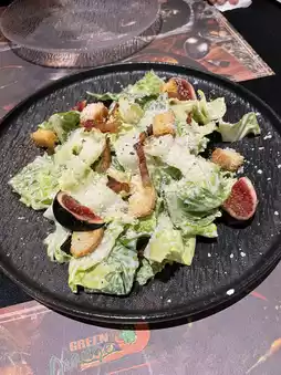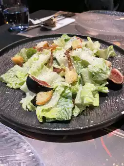 The salad vegetables are crispy, the cheese is quite strong, the bread crumbs are crispy and not hard, the bacon is salty, and the figs are sweet.