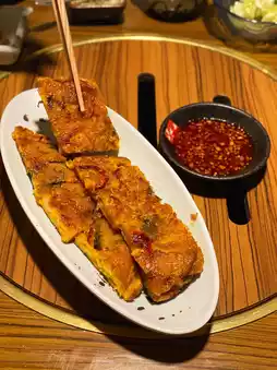 After the wagyu beef, we served "🍘Korean Pancakes (Seafood)"