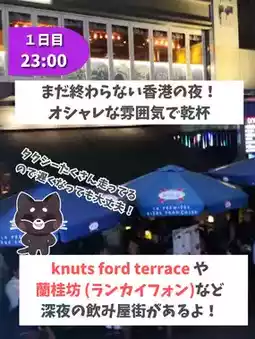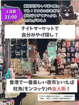 and then head out to the night market, Ladies' Market👜 After enjoying the night market, you can either go back to the hotel, or go out to Knutsford Terrace or Lan Kwai Fong and enjoy 🍺 until late at night❗️It's best to choose which one to go to, whichever is closer to your hotel☝️