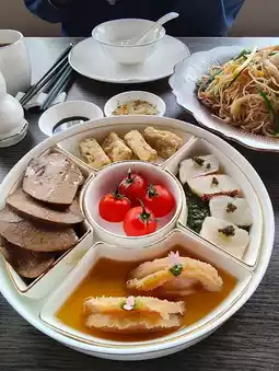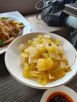 For lunch, they offer dim sum priced around HKD 50-60; set meals are about HKD 90, with an additional HKD 18 per person for tea and HKD 38 for a plate of Chaozhou pickled vegetables (I usually order Chaozhou pickled vegetables when I go for cold dishes, so I find it reasonable. The pickled vegetables here are sweet and sour and quite tasty).