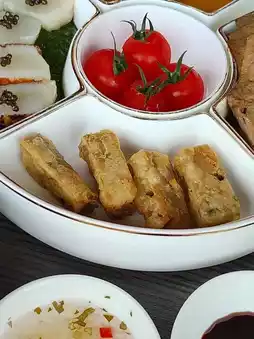 We ordered the Chao Yat Five Delicacies for HKD 328, which includes drunken abalone, peppercorn scallops, marinated goose liver, fried meat dumplings, and tomato walnut salad. The best dish was the peppercorn scallops, which were pan-seared on both sides, giving them a smoky flavor and a fresh, bouncy texture. The green sauce had a fragrant peppercorn aroma, adding layers of flavor.