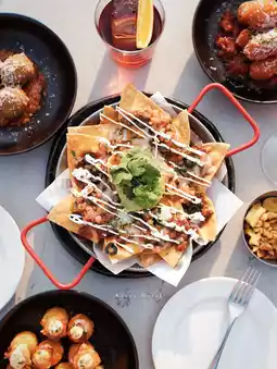 Corn flakes, kidney beans, chili sausage, cheddar cheese, avocado sauce,