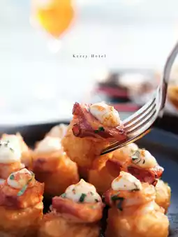 Serve on potato balls with garlic mayonnaise and smoked paprika