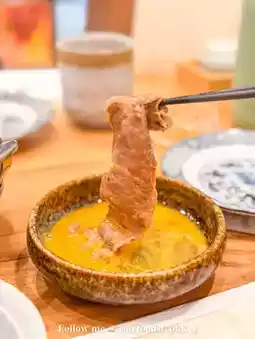 ‣ Kanto-style Sukiyaki soup The sukiyaki soup base is moderately sweet and salty, and it is a perfect match with wagyu beef 😘