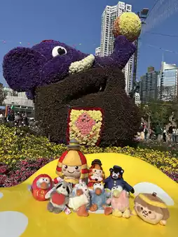 Minister Kumamoto who graduated from Kumamoto University, Kumamoto Juzhicheng's mascot Castle, and Running Fatty who just finished the Plastic Thing Run2025, attended the annual Hong Kong Flower Show as representatives this year😆