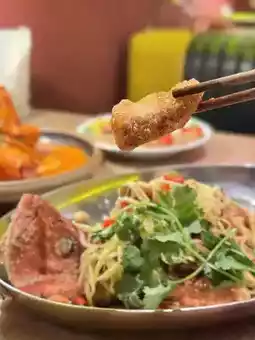 Add the Northeast sour and spicy sauce (lime + fish sauce + chili flakes), slightly spicy to enhance the flavor, and the accompanying cucumber is sour and quite refreshing!