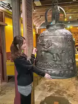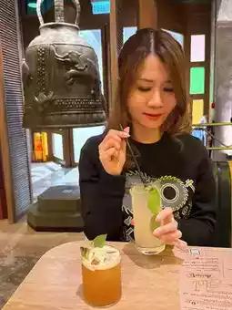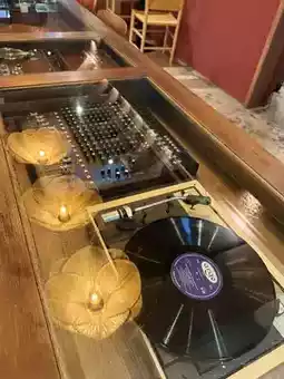 The decor is very characteristic, once you enter the door you see a large copper bell, TukTuk car seats, rattan woven lamp, and vinyl disc corner, many photo spots!