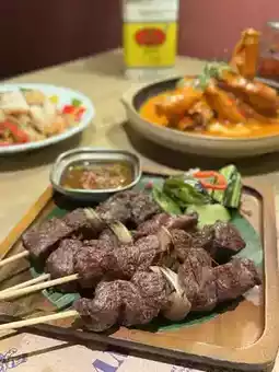 Four skewers per serving, wagyu beef with charcoal flavour, bite the gravy very juicy!