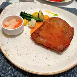 Being food enthusiasts, we had to try the main courses as well! I love beef, so I added $150 for the grilled Australian beef tenderloin. I ordered it medium, and although it was slightly overcooked, it was still tender and flavorful, paired with fresh grilled vegetables and mashed potatoes, making it a very refined dish.