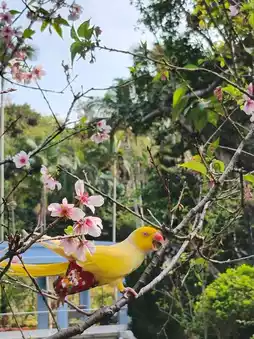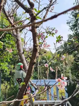 🌸 Tsuen Wan Shing Mun Valley Park, at the entrance next to the Shing Mun Valley Swimming Pool, there is a rose garden on the left with a few cherry blossom trees. I happened to see a local resident 'releasing' parrots🦜. The parrots are lively and love flowers just like humans, truly a scene of birds and flowers.