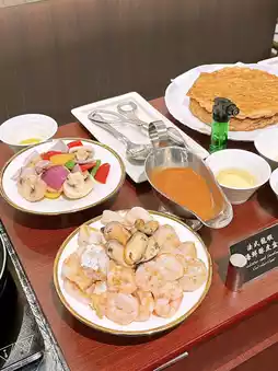 There are plenty of buffet dinner styles, such as frozen seafood with bread crab, lobster, long-legged crab, mussels, etc. I think friends who eat frozen seafood can be satisfied, sashimi has six, are mainland styles, such as salmon, red mussels, sweet shrimp, octopus and so on