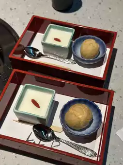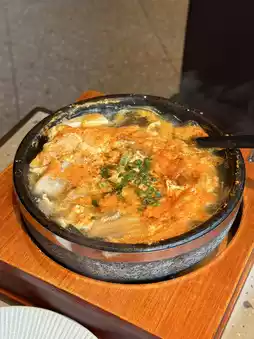 The tofu is smooth and served with pork, kimchi and egg flakes. The overall taste is rich and quite tasty