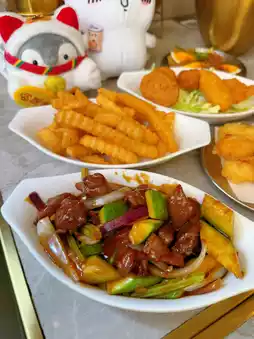 There are plenty of Japanese Thai authentic delicacies available ✅ Fried foods include crispy fried bananas, shrimp cakes, fish cakes, skewers of pork, beef, chicken 👍 Tempura has shrimp, Japanese potatoes, greenhouse pumpkin, emperor crab sticks ❤️ Selected stir-fries include Japanese beef, garlic fried cuttlefish, grilled mussels, etc. 🤩 All very large plates and full of ingredients 🌟 Super affordable 😘