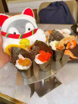 There are many choices of sashimi sushi ❤️ The sashimi has the essential salmon, herring, red shrimp, bacon, squid, sashimi, etc. 😍 All thick cut and large pieces, bright and delicious color 😆 super high quality 👍