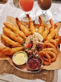 The treasure of One Piece ๐ is the seafood fried food platter, with very crispy ๐ fried fish, fried shrimp ๐ค, fried onion rings ๐ง