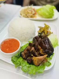 When the Hainanese chicken came, I thought I was given a chicken😂, the owner said it was free-range chicken so it was bigger and more meaty🐔, it tasted very smooth and chicken flavor❤️. We also use the twin meal very cheaply order the caramel 🐟, with the stove keep rolling this point is quite worthy of praise 👍🏻. The tom yum flavor is very effective in removing the fishy smell of mullet itself 😙, after eating, you can also drink the whole soup, which is enough for one fish and two uses 🤣.