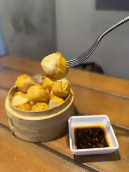 Chili oil is a must when eating siu-mai! The siu-mai is fried to order and very crispy; or you can sprinkle a little salt on it, it's just as delicious!