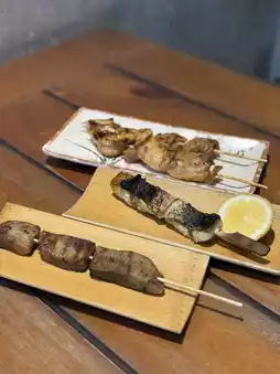 A skewer of three pieces of thick-cut beef tongue is soft and refreshing, and the meat is rich in flavour.
