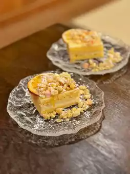 The cheesecake is smooth and sprinkled with crispy grains to enrich the taste. The grapefruit tastes fresh and not greasy