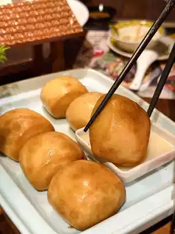 The dish is presented with great care, with Zhuge Liang standing at the bow and the spicy wind and cloud flag, it is very impressive. The fried buns are placed in a small boat, with smoke floating around, which is as poetic as a picture. The steamed buns are fried until golden and crispy, crispy on the outside and soft on the inside. Dip them in condensed milk and eat them. It is simple but delicious.