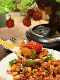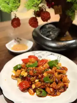 A classic sweet and spicy Sichuan dish, with tender chicken, peanuts, green and red peppers, attractive color and outstanding spicy taste.