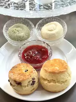 The muffins are crispy on the outside and soft on the inside, served hot, coated with special pistachio cream, nutty and slightly savory, served with homemade strawberry jam, sweet and sour, perfectly interpreting the essence of British afternoon tea!