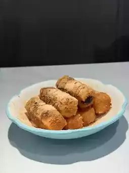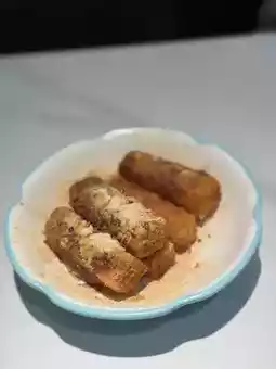 Red sugar dumplings: you must eat them while they are hot! The top layer is covered with fried red sugar, which is very crispy and a little crispy. The yellow bean powder relieves the greasiness and has a delicate taste.