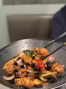 One-Eating Mushroom Chicken Pot: Plenty of portion, large pot, add a lot of mushrooms, bamboo shoots, red pepper, onion, shallot, garlic, etc., rich mushroom fragrance, chicken texture tender, soft, chicken pieces after frying pan full of flavor, very tasty.