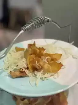 Two meals plus soup for hot pot🍲: Set includes ingredients fried chicken skin, raw chicken kidney, chicken slices, chicken fillet" is presented on an afternoon tea stand, which is both appropriate for taking pictures. The fried chicken skin can be eaten immediately. It should be eaten while it is hot. It is crispy and crispy, and the chicken skin is oily. The chicken slices are a little bit chewy, the chicken freshness is more prominent, the chicken kidney is crispy and bouncy, and the chicken fillet is super smooth.