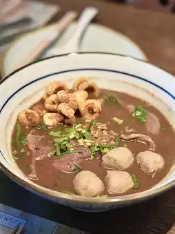 For the main course, the Spanish suckling pig was incredibly flavorful, with crispy skin and tender meat 😋. The Thai-style Wagyu boat noodles featured a massive piece of Wagyu beef that was simply extraordinary 😍, and the beef balls were perfectly bouncy 👍🏻.