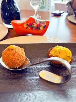 The white chocolate foie gras is a pleasant surprise. The sweetness of the chocolate itself is very appealing, and the foie gras has an unprecedented special taste. The presentation is also very thoughtful.