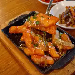 There is also the "Korean Braised Ox Tail Stew" which is really amazing! The beef tail is stewed until it is super soft and tender, and the bones and flesh are separated in one sip. The rich sauce mixed with rice is simply a "white rice thief". My friend almost wanted to lick the pot! 🍚🔥 Iron Plate lovers must try "Iron Plate Fried Year Cake Shy Fried Tteokbokki", the outer layer of the year cake is fried to crispy, bite down smoky and keep hot, sweet and spicy sauce and some fish cake and cheese, evil but can not stop ah ~ 🧀