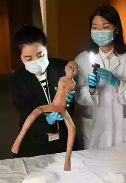 Another notable exhibit is the Han dynasty Horse Rider figurine, unearthed from the outer burial pits in the southern area of Han Yangling. This armless, bare-chested figure is posed with bent legs, originally designed to straddle a wooden horse. Circular holes and remnants of wood on the shoulders suggest that the figure was once equipped with wooden arms and dressed in silk or hemp garments.