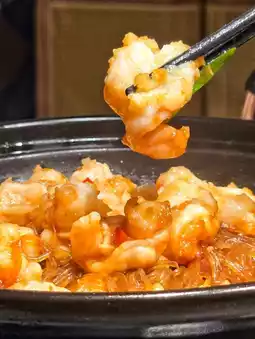 Cooked directly on the table in a clay pot, this dish includes plenty of shrimp along with the vermicelli. The staff helps with timing and cooking the shrimp to perfection. Fresh and piping hot, the shrimp is tender and bouncy, while the vermicelli absorbs all the flavors, making it incredibly tasty.